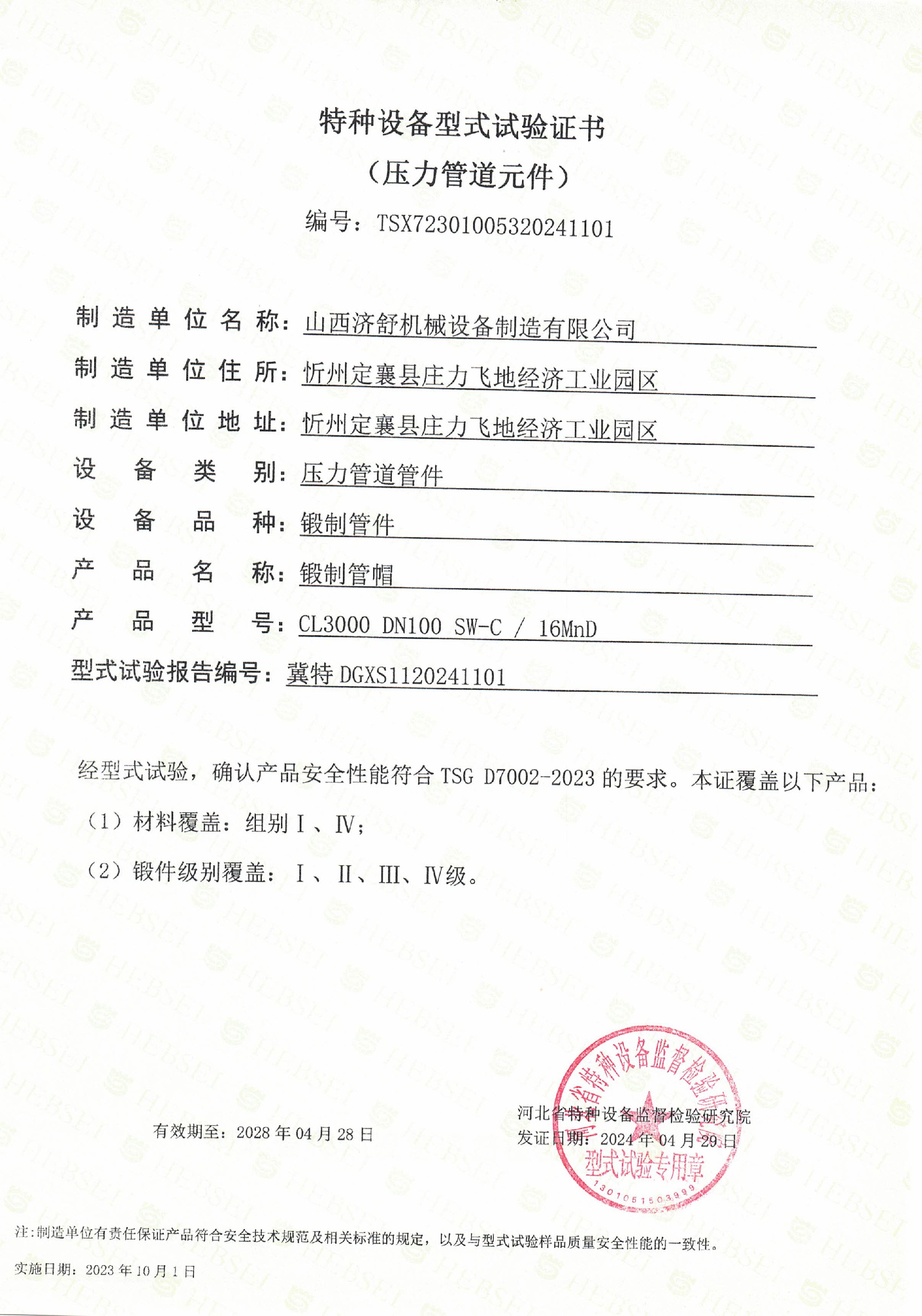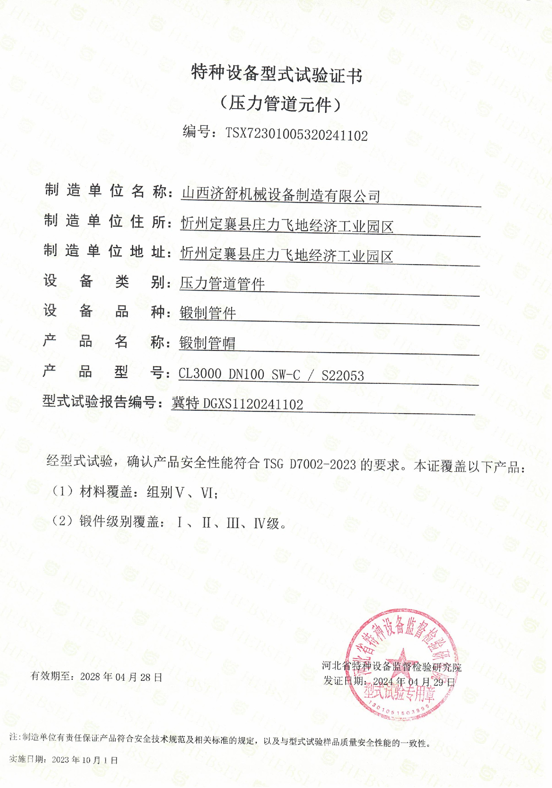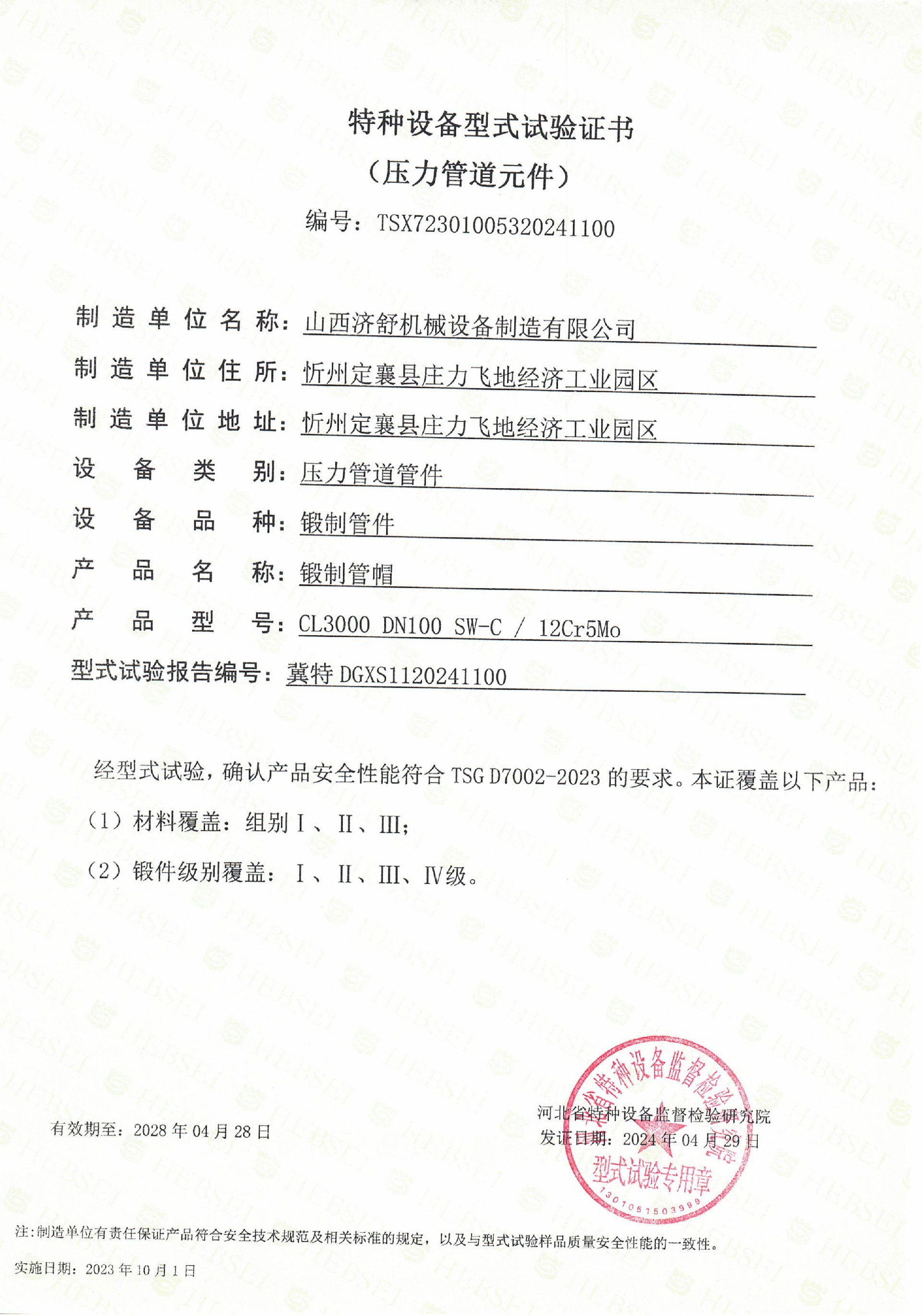 TSX特种设备型式试验证书