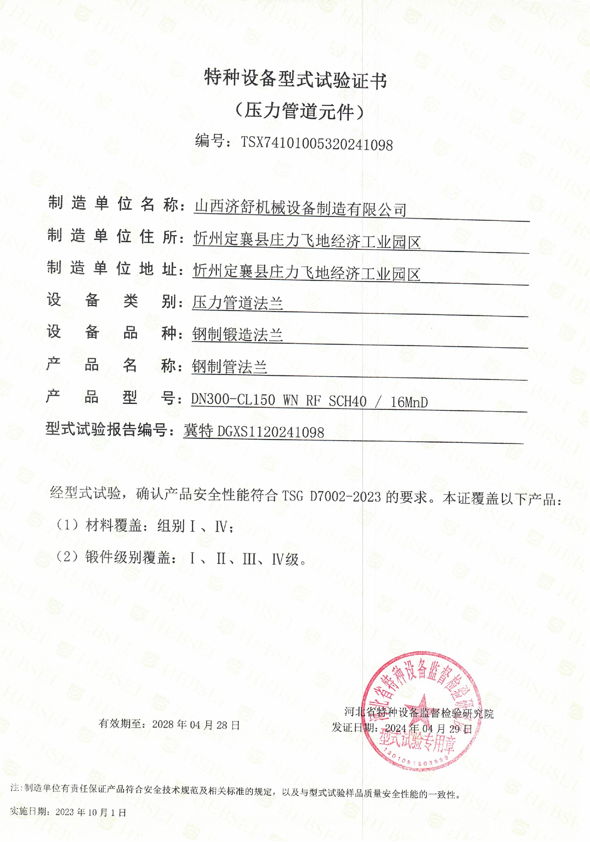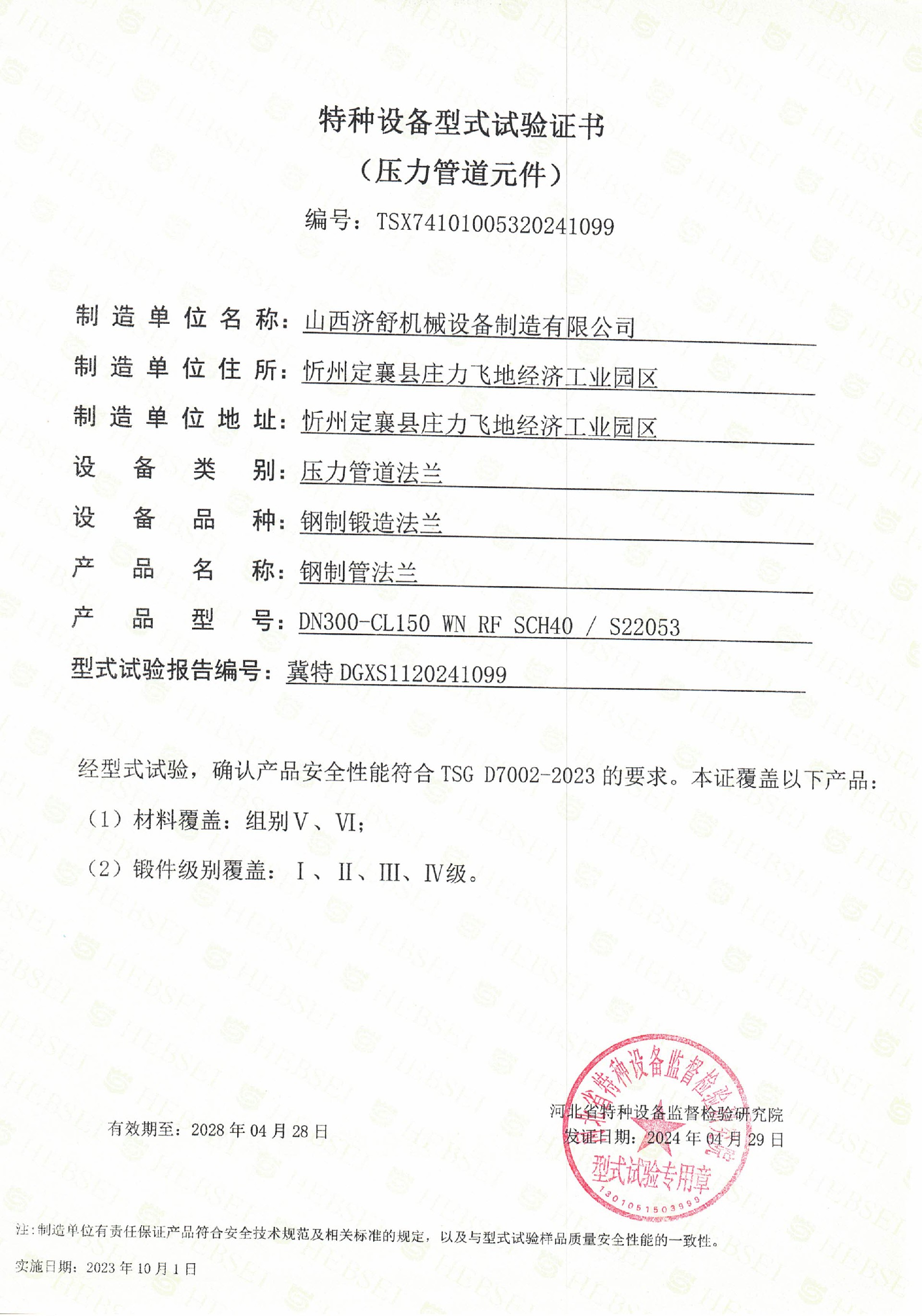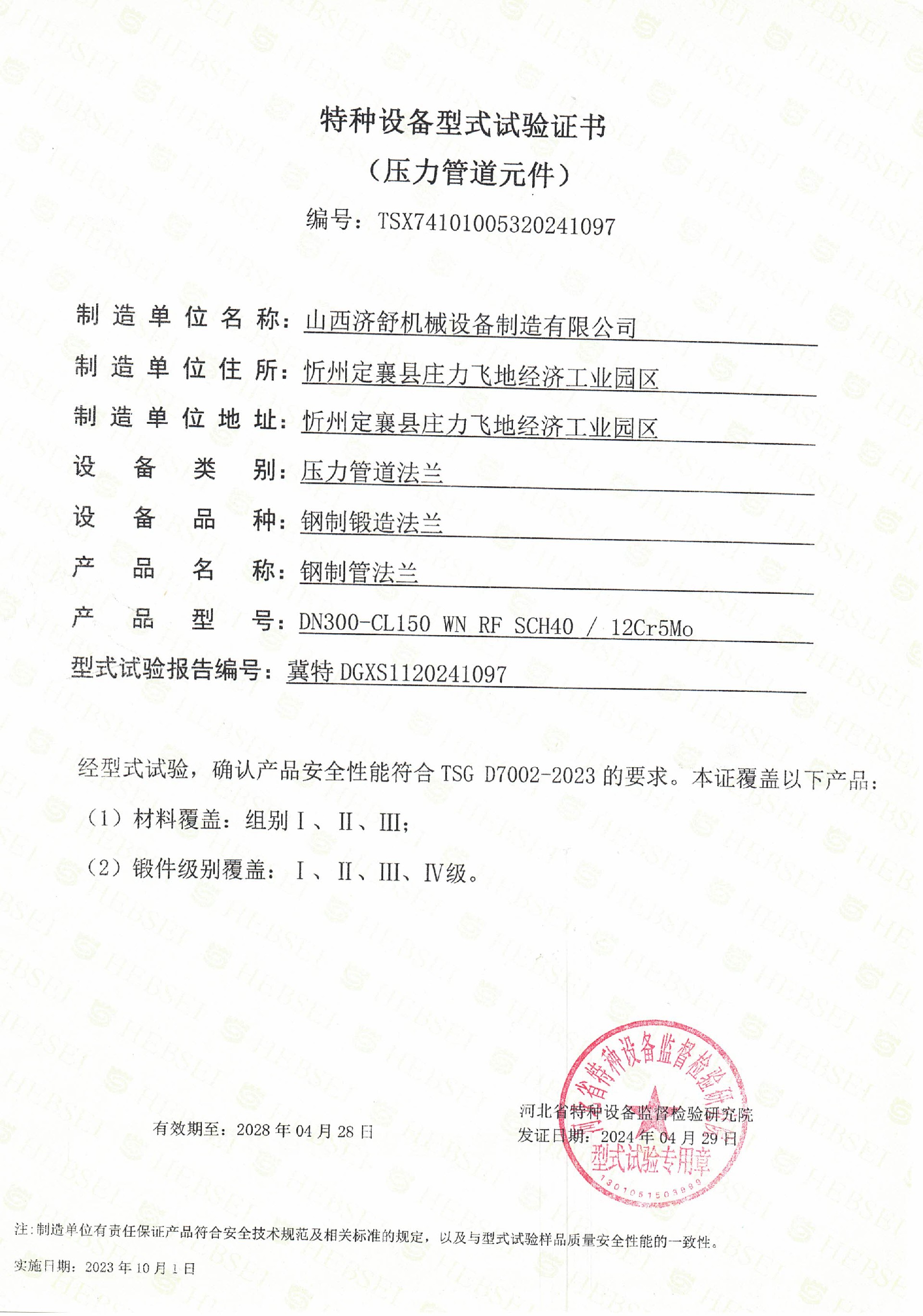 TSX特种设备型式试验证书